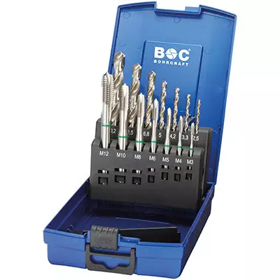 Sisältää: konekierretapit vihreällä renkaalla HSS-E (Co 5) M3 - M12, suoralla uralla sekä poranterät 2.5 - 10.2 mm. Soveltuu yleisesti teräkselle sekä lyhyt lastuavalle alumiinille.... Lue lisää