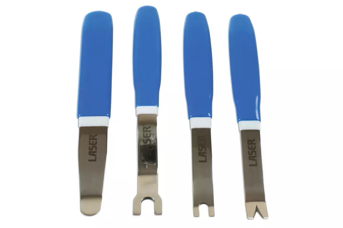 Korikiinnikkeiden Irrotustyökalusarja 4-osaa Työkalusarja korikiinnikkeiden irrottamiseen. Valmistettu ruostu-mattomasta teräksestä. Pehmeät kahvat ja hyvä viimeistely. Toimitetaan kankaisessa... Lue lisää