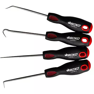 Koukkusarja O-renkaiden, päättömien lukko- renkaiden yms. irrottamiseen ja asentamiseen. Kokonaispituudet 141 mm.