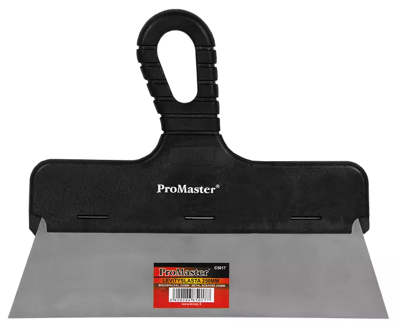 ProMaster -lasta metallia, kahva muovia -terän leveys 250 mm -terän korkeus 48 mm -kahvassa ripustusreikä -viivakooditarra -takuu 1 vuosi