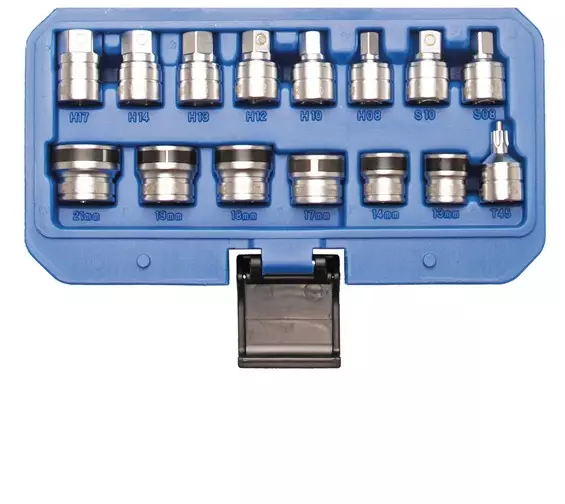 Kuusiokolot: 8 - 10 - 12 - 13 - 14 - 17 mm Neliöt: 8 - 10 mm Torx: T45 Hylsyt: 13 - 14 - 17 - 18 - 19 - 21 mm