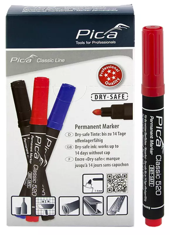 -kynän väri punainen -voidaan käyttää kaikille kiiltäville ja huokoisille pinnoille -viivan paksuus 1-4 mm -poistettavissa alkoholilla tai muilla liuottimilla -kuivuu nopeasti -säilyy jopa 14... Lue lisää