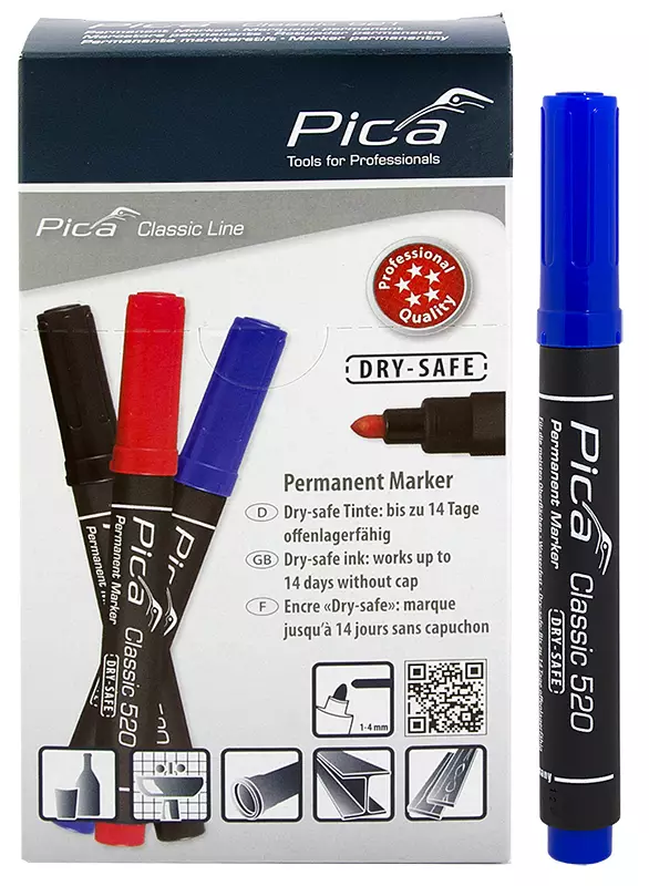 -kynän väri sininen -voidaan käyttää kaikille kiiltäville ja huokoisille pinnoille -viivan paksuus 1-4 mm -poistettavissa alkoholilla tai muilla liuottimilla -kuivuu nopeasti -säilyy jopa 14... Lue lisää
