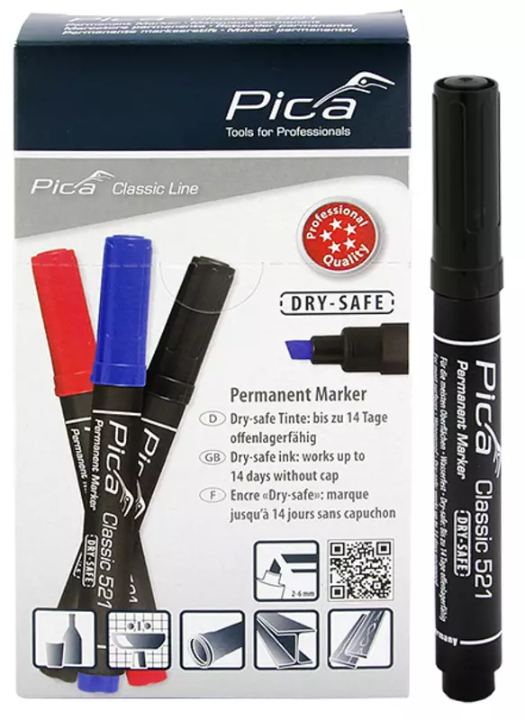 -kynän väri musta -voidaan käyttää kaikille kiiltäville ja huokoisille pinnoille -viivan paksuus 2-6 mm -poistettavissa alkoholilla tai muilla liuottimilla -kuivuu nopeasti -säilyy jopa 14... Lue lisää