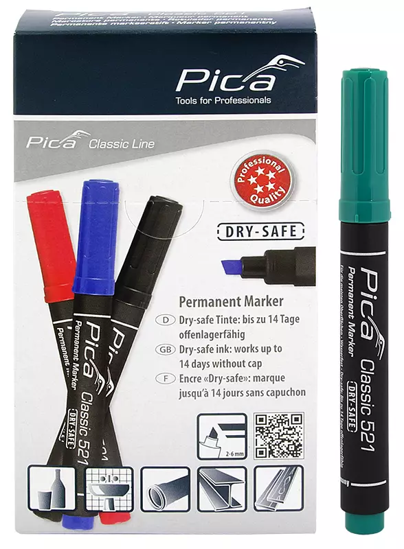-kynän väri vihreä -voidaan käyttää kaikille kiiltäville ja huokoisille pinnoille -viivan paksuus 2-6 mm -poistettavissa alkoholilla tai muilla liuottimilla -kuivuu nopeasti -säilyy jopa 14... Lue lisää