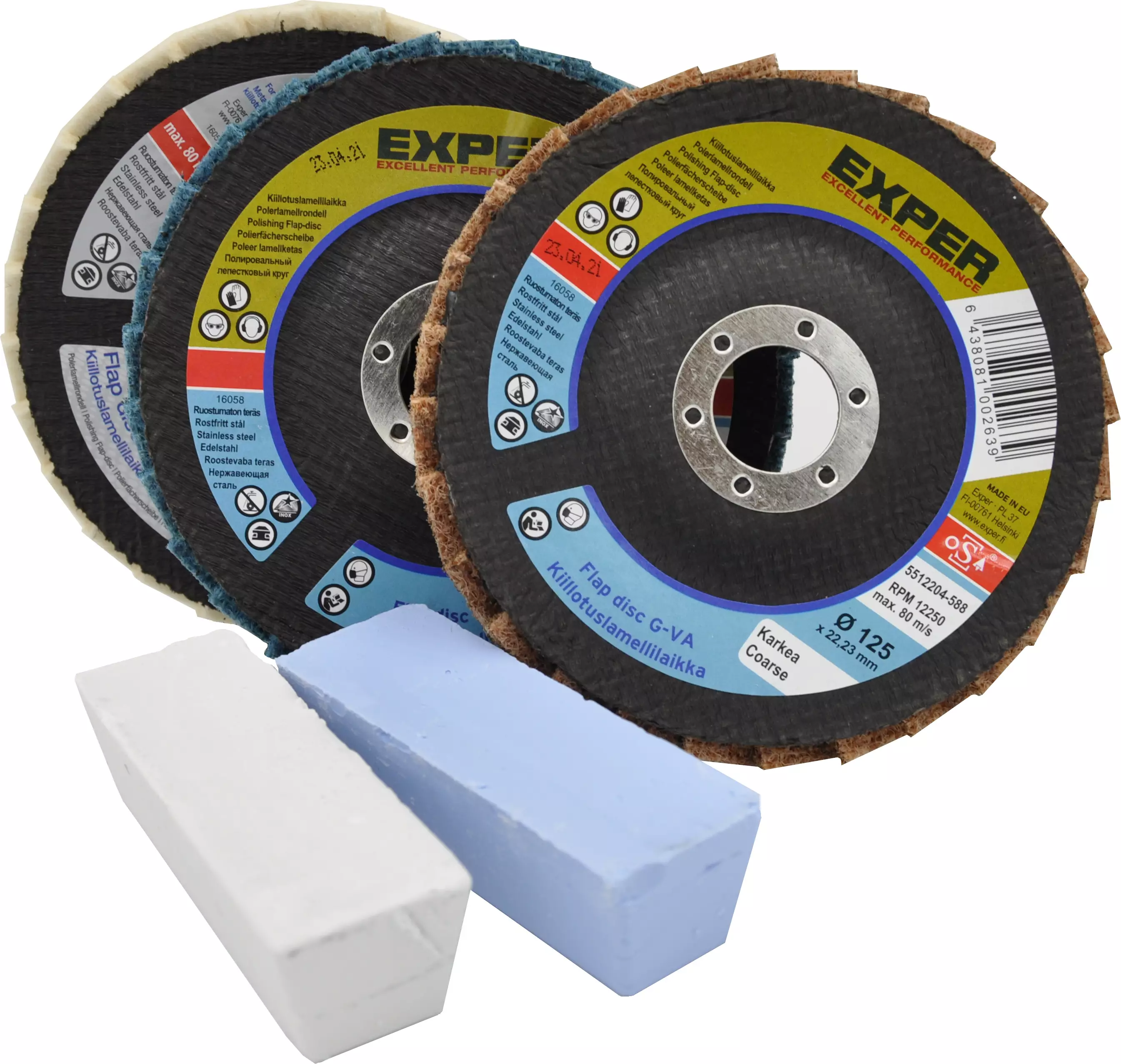 Suora, kulmahiomakoisiin Metallien kiillotukseen 1 huopa + 2 karhunkieltä + 2 vahaa ? 125 x 22 mm