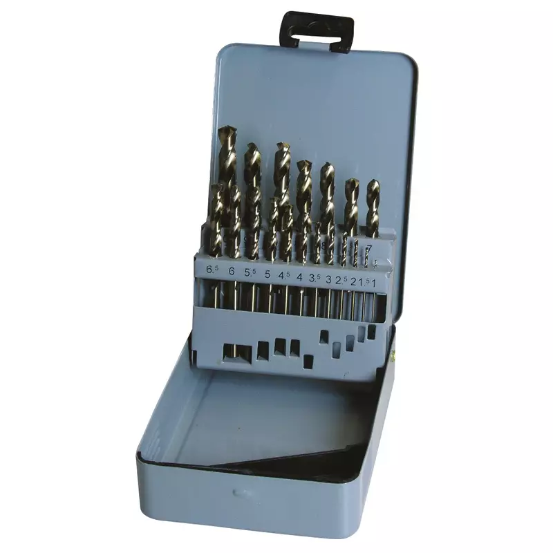 19-osainen koboltti poranteräsarja metallilaatikossa 19- osainen metalliporanteräsarja sisältää koot: 1 - 10 mm. Metallilaatikossa. DIN 338. 5% koboltti.