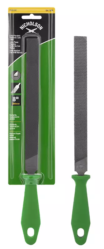 -materiaali työkaluterästä -koko 200 mm -muoto: litteä -karkeus: karkea, ristiinhakattu -ergonomisesti muotoiltu kahva -kahvassa ripustusreikä