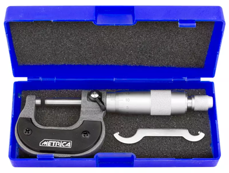 -kromipinnoitettua / maalattua terästä -karbidikärjet -mittausalue 0-25 mm -mittatarkkuus 0.01 mm -lukitusvipu -helppo käyttää -räikkäpysäytys -ABS-muovikotelo