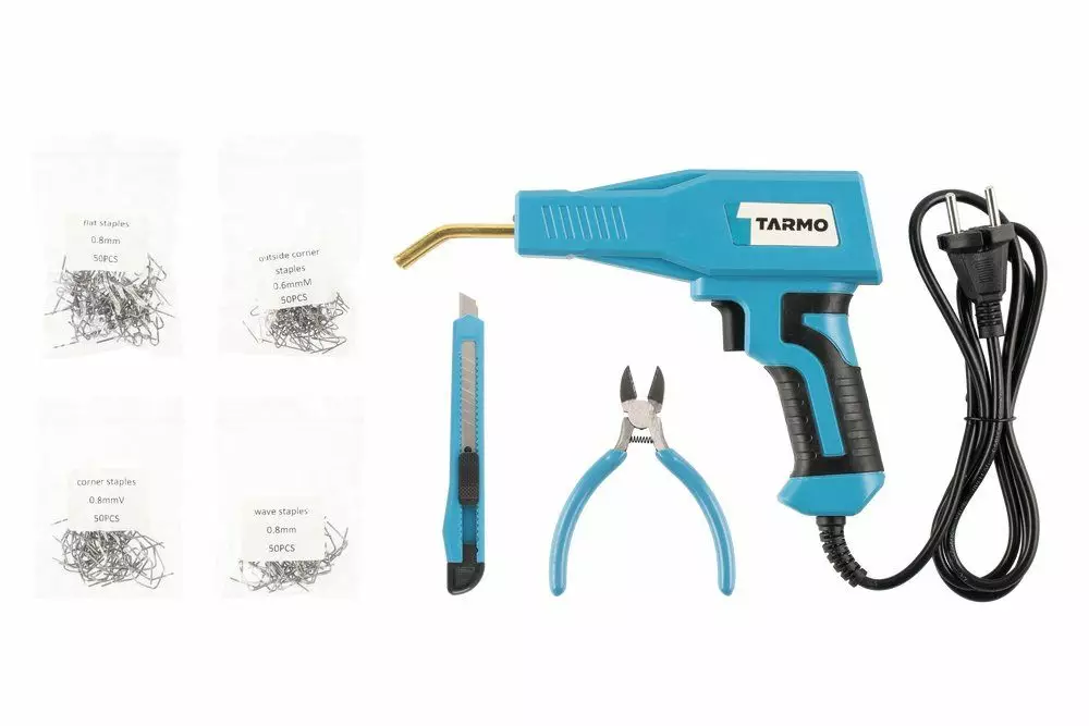 Helppokäyttöinen muovinkorjaussarja, jolla saa korjattua haljenneet tai särkyneet muoviosat itse. Kuumanitojalla sulatetaan vaurioituneeseen kohtaan niitti muovin sisään. Niitti lämpenee käyttökuntoon noin sekunnissa ja se soveltuu muoveille, joissa on lasikuitua vähemmän kuin 40%. Pakkaus sisältää kuumanitojan, 200 niittiä, sivuleikkurit, mattoveitsen sekä säilytyslaukun. Tuotetiedot: Teho: 50 W. Jännite: 230 V ~50 Hz. Ulostulo: 0-3V/ 0-65 A. Johdon pituus: 1,4 m. Takuu 2 vuotta.