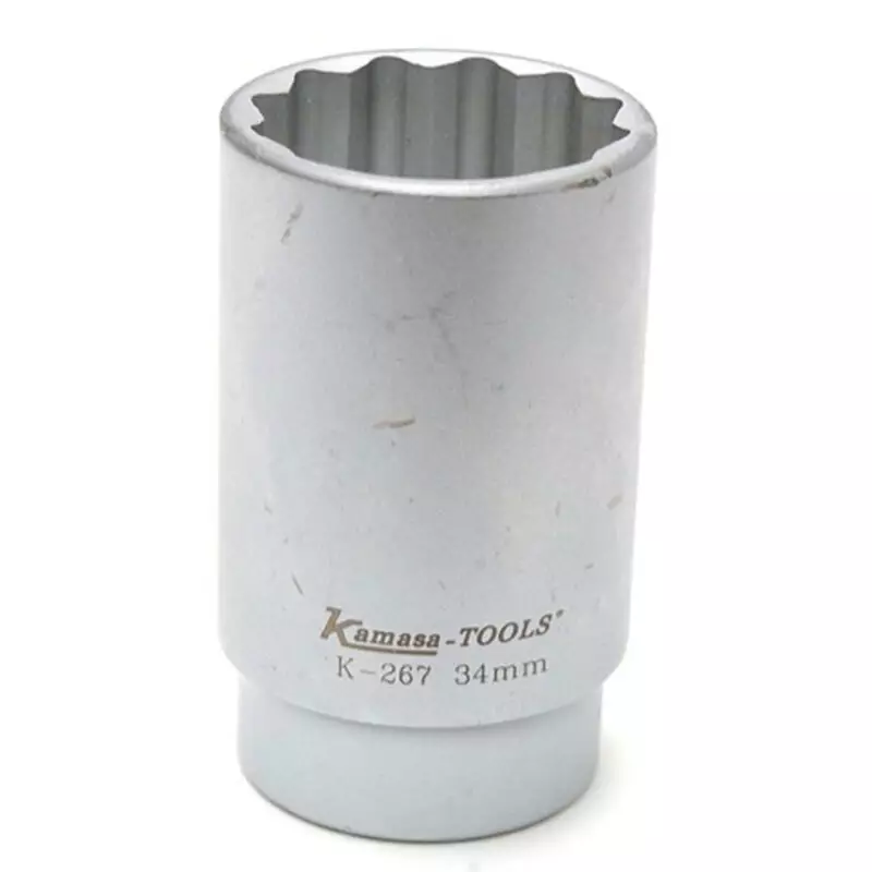 Napamutterin hylsy 12-kulmaisille muttereille - ehdottomasti tarpeen tehtäessä toimenpiteitä etu- ja taka-akselille. 34mm