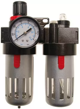 Paineensäädin BGS Suodattaa ja öljyää paineilmalinjastoa Voidaan ruuvata seinään Maksimi paine: 15 bar (220 psi) Sisään ja ulostulo 1/4" Paine säädettävissä 0-10 bar (0-150 psi) 10... Lue lisää