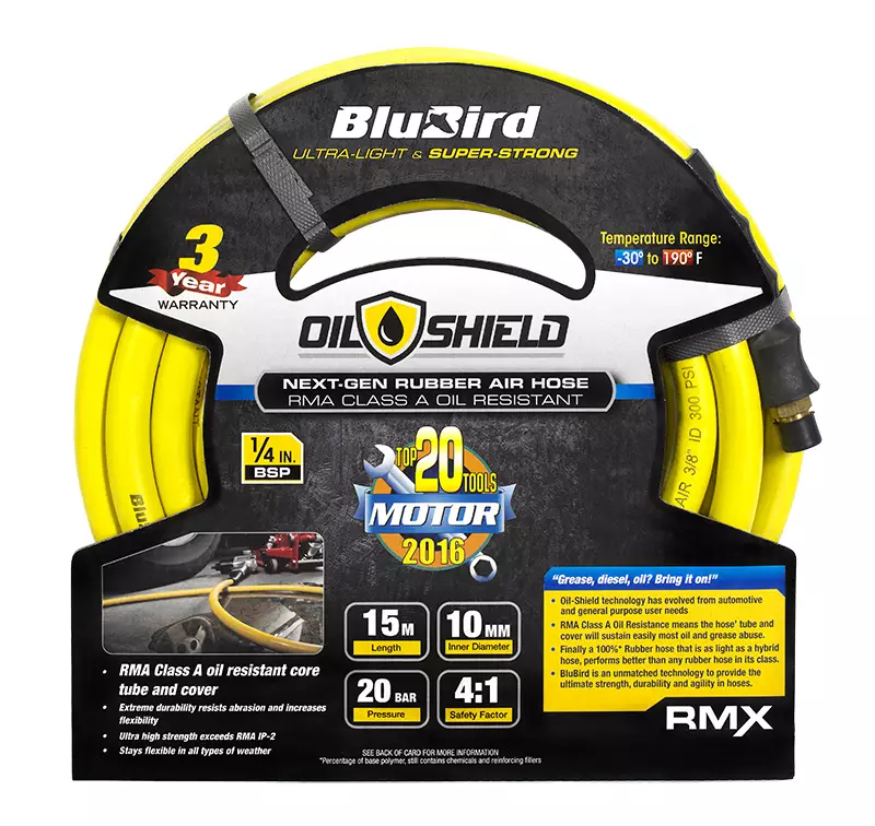 -premium-luokan kuminen paineilmaletku -40% kevyempi kuin yksikän vastaava A-luokan kumiletku -Motor Magazine 2016 USA, TOP20 tools -listalla -RMA Class A Oil Resistance, kestää öljyn, dieselin... Lue lisää