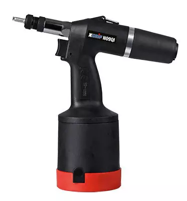 N09QI paineilma/hydraulinen niittimutteripihti. Malli on varustettu vetovoimansäätimellä ja kierrekarojen pikavaihdolla. Automaattinen oikealle ja vasemmalle pyöritys. Painattaessa niittimutteria tai pulttia kevyesti kierrekaraan XGRIP automatiikka kiertää niittimutterin tai pultin karaan. Paina liipaisimesta ja laite asentaa niitin. Laite irtoaa niitistä automaattisesti pyörimällä vasempaan. Kapasiteetti: M3 - M12 niittimutterit/niittipultit kaikki materiaalit Käyttöpaine 5 -7 bar Vetovoima 6 bar 23 kN Iskupituus 8 mm Vakiovarusteena kara/ohjain M4,M5;M6,M8 ja M10 niittimuttereille. Lisävarusteena kara/ohjain niittipulteille.