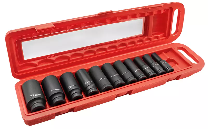 -sarja sisältää: 10, 13, 14, 15, 17, 18, 19, 21, 22, 24, 27, 30, 32mm hylsyt