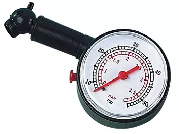 Rengaspainemittari 0-4 Bar Muovinen, näyttöalue 0-4 bar, varustettu reset-painikkeella.