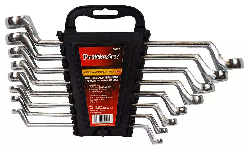 ProMaster -korkealaatuista, karkaistua kromivanadium -terästä -8-osainen sarja sisältää koot 6x7 - 8x9 - 10x11 - 12x13 - 14x15 - 16x17 - 18x19 - 20x22 mm -kiillotetut, 75 asteen kulmaan... Lue lisää