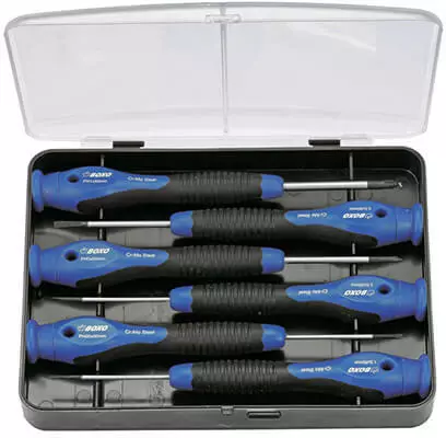 Pieni ruuvitalttasarja töihin, joissa tarvitaan pieniä ruuvimeisseleitä. Ruuvarit pakattu hienoon läpinäkyvään rasiaan.