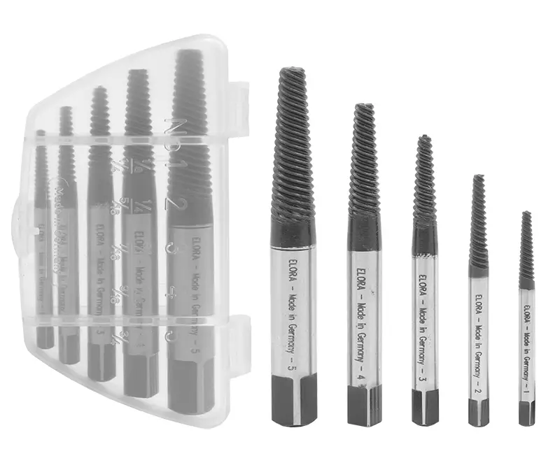 -ulosvetäjäsarja katkenneiden ruuvien, pulttien, nastojen ja holkkien irrottamiseen