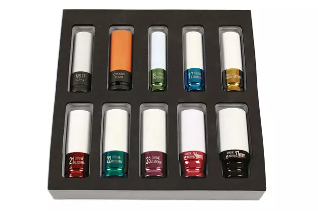 Muovisuojatut hylsyt. Hylsy sarja sisältää koot: 15, 17, 19, 21, 22, 23, 24, 27MM ja erikoishylsyt MB (W204, W207, W211, W212) sekä Hyundai (mm. Hyundai i30, Tucson).