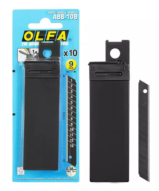 Varaterä Mattopuukkoon Erikoisterävä 9 mm 10kpl Sopii mm. Olfa SVR-1 ja 180 veitsille 10 erikoisterävää varaterää Terän leveys 9 mm