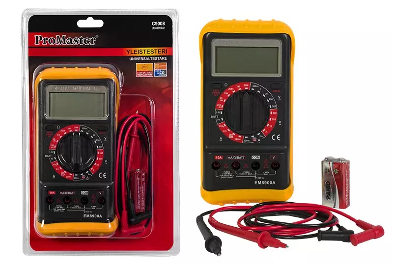 ProMaster -3½ numeroinen LCD-näyttö -heikon pariston varoitusilmaisin -ylikuormitussuojattu -automaattinen sammutus -paristo 9V x 1 kpl sisältyy pakkaukseen -mitat 164 x 85 x 34mm ilman... Lue lisää