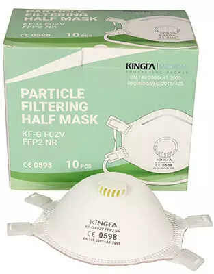 Kingfa FFP2 on kertakäyttöinen hengityssuojain, joka suojaa käyttäjää annetun suojaustason mukaisesti. Tuotteessa on uloshengitysventtiili, joka poistaa suodattamattomana lämmintä ja kosteaa ilmaa hengityssuojaimen sisältä. Luokituksen FFP2 mukaisesti, materiaalin suodatustehokkuus on vähintään 94%.
