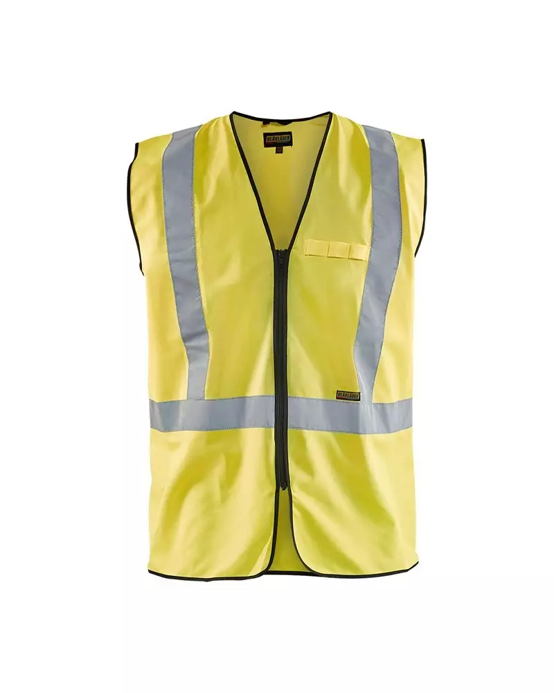 Vetoketjullinen highvis-liivi, jossa 50 mm heijastimet. Sertifioitu EN471 ja EN20471 Luokka 2 (Näkyvä varoitusvaatetus ammattikäyttöön).
