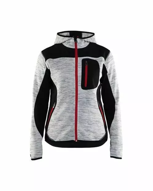 Neulottu takki hupulla, nuorekkaalla ilmeellä ja mukavan tuntuisella materiaalilla. Kontrastivärinen vetoketju ja softshell -vahvistukset kulutusalttiissa kohdissa lisäämässä kestävyyttä. Sopii erinomaisesti niin työhön kuin vapaa-aikaankin. Saatavilla myös miesten malli, tuote 4930.