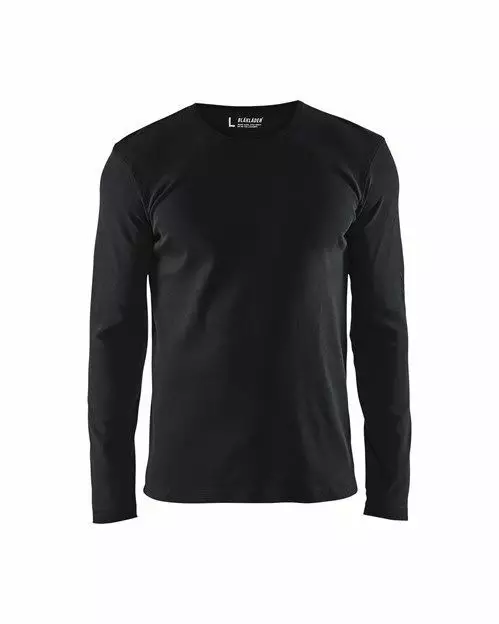 Yksivärinen t-paita pitkillä hihoilla. Ribbineulottu, pyöreä kaula-aukko. Vahvistetut kaula- ja olkapääsaumat.