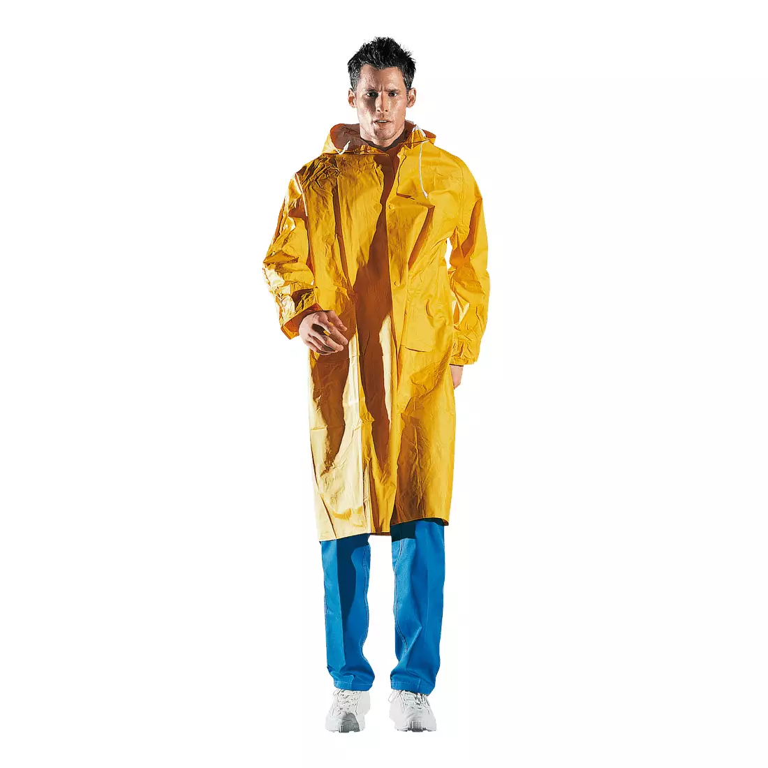Polvipituinen sadetakki polyesteri/PVC-yhdistelmästä, vesitiiviillä lämpösaumauksilla, paino 250 g/m². Edessä napitus ja sisäläppä, huppu kiristysnauhalla, joustavat tuulensuojahihansuut... Lue lisää