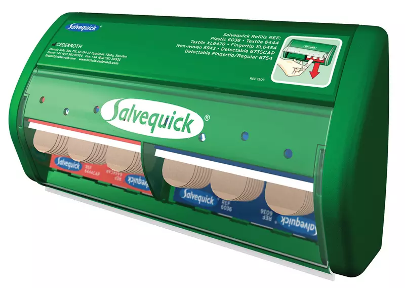 Laastariautomaatti 5 kpl, Salvequick Kätevä laastariautomaatti paikkaan kuin paikkaan. Kun vedät laastarin automaatista, toinen liimapinnoista avautuu ja laastari on heti käyttövalmis.... Lue lisää