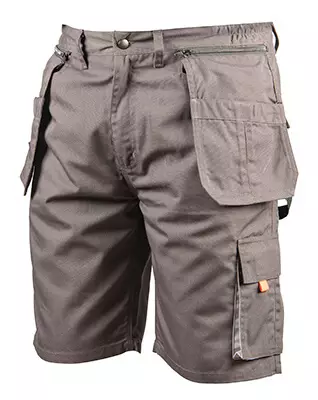 Shortseissa on työkalulenkit, useita taskuja ja irrotettavat riipputaskut etupuolella. Materiaali: 80% polyesteri, 20% puuvilla. Vyö shortseihin: 913-V.
