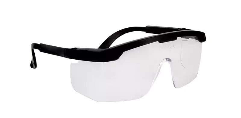 -kirkkaat suojalasit sangoilla -kirkasta muovia, kaareva pinta seuraa kasvon muotoja