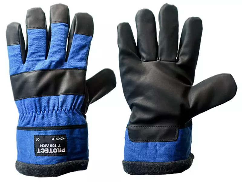 -koko 11" -kestävä PU-pinnoitettu kämmen -puuvillakangasselkä -lämmin huopavuori -väri sininen/musta -CE-merkitty -IP-ripustin